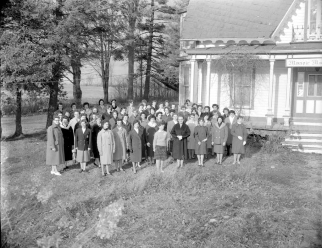 Le dossier présente également un groupe d'étudiante devant un des bâtiments de l'école
