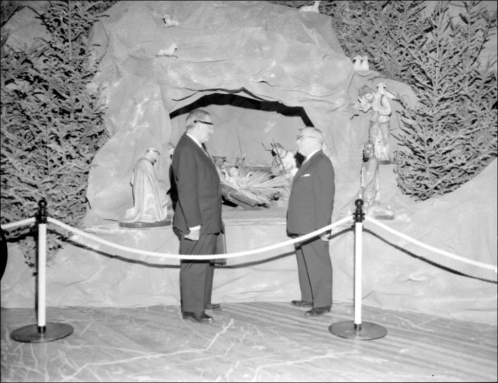 Deux hommes discutant à l'Hôtel de ville de Saint-Hyacinthe au cours du Salon de l'agriculture