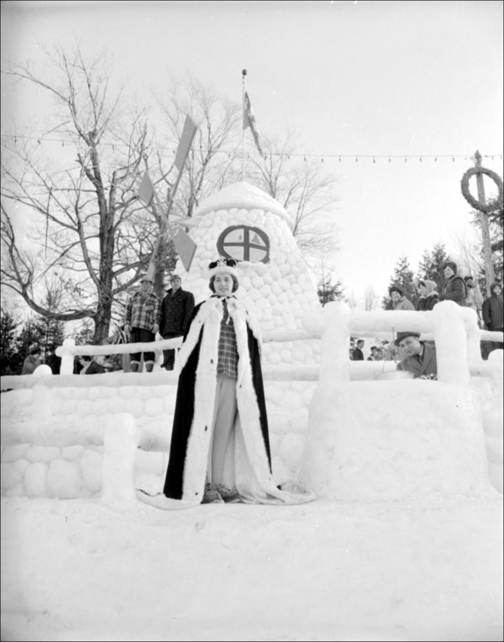 - La reine du Carnaval photographiée devant des sculptures de neige au Carnaval de Sainte-Agathe-des-Monts