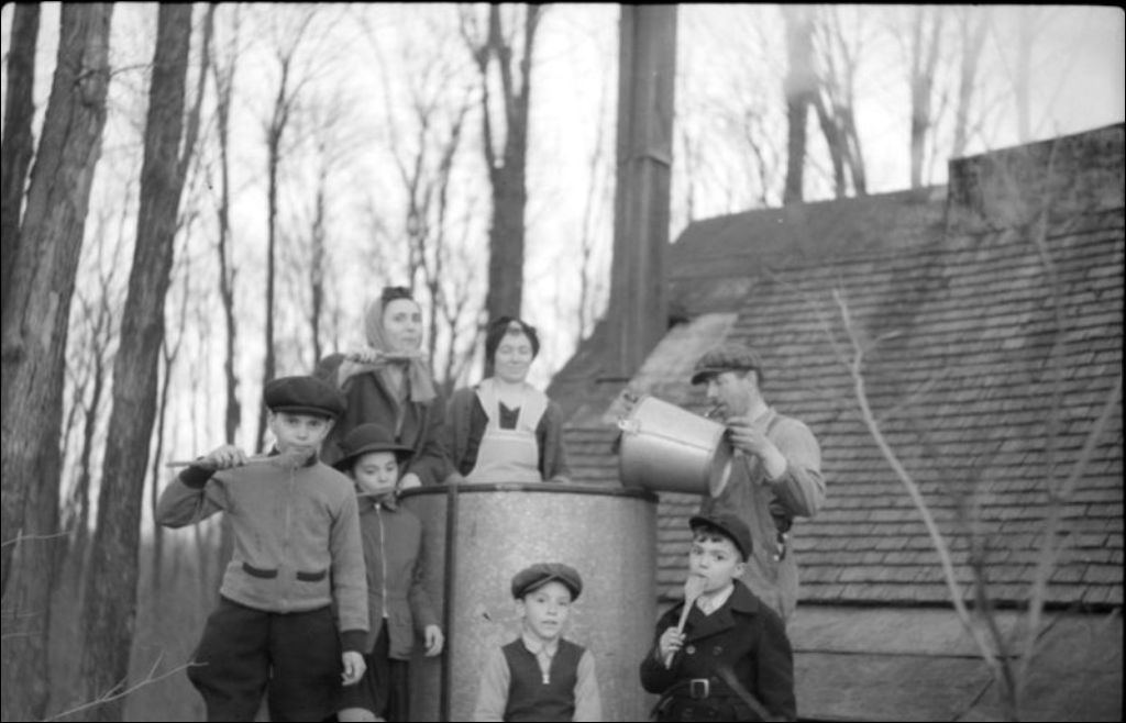 Fête de l'érablière, 1945, Archives nationales à Montréal, Fonds Ministère de la Culture et des Communications, (06M,E6,S7,SS1,D40351-40352), Photographe non identifié.