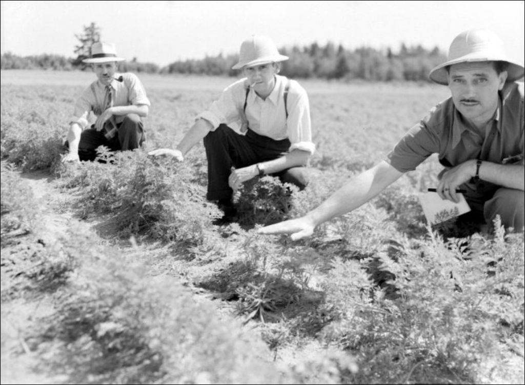- Culture de carottes difformes dans un champ de Saint-Martin. Nous remarquons aussi des spécimens de légumes après la cueillette. Le dossier a été produit pour le Service de protection des plantes du ministère de l'Agriculture