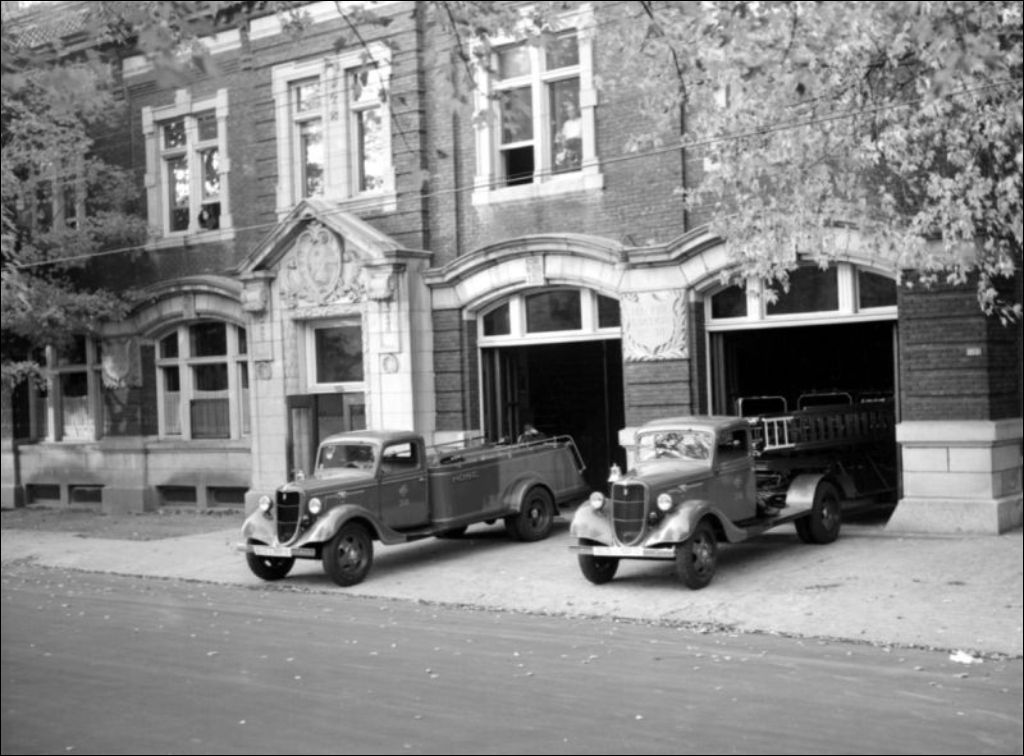 - Il s'agit de la promotion d'une campagne de prévention des incendies à Montréal. Ce photo-reportage montre certains véhicules utilisés par le Service des incendies et renseigne sur l'architecture des casernes de pompiers. De nombreux camions à incendie et véhicules sont stationnés devant les casernes portant les numéros 7, 38 à 46. La prise de vue a été réalisée pour le Service du Commissariat des incendies, ministère des Travaux publics