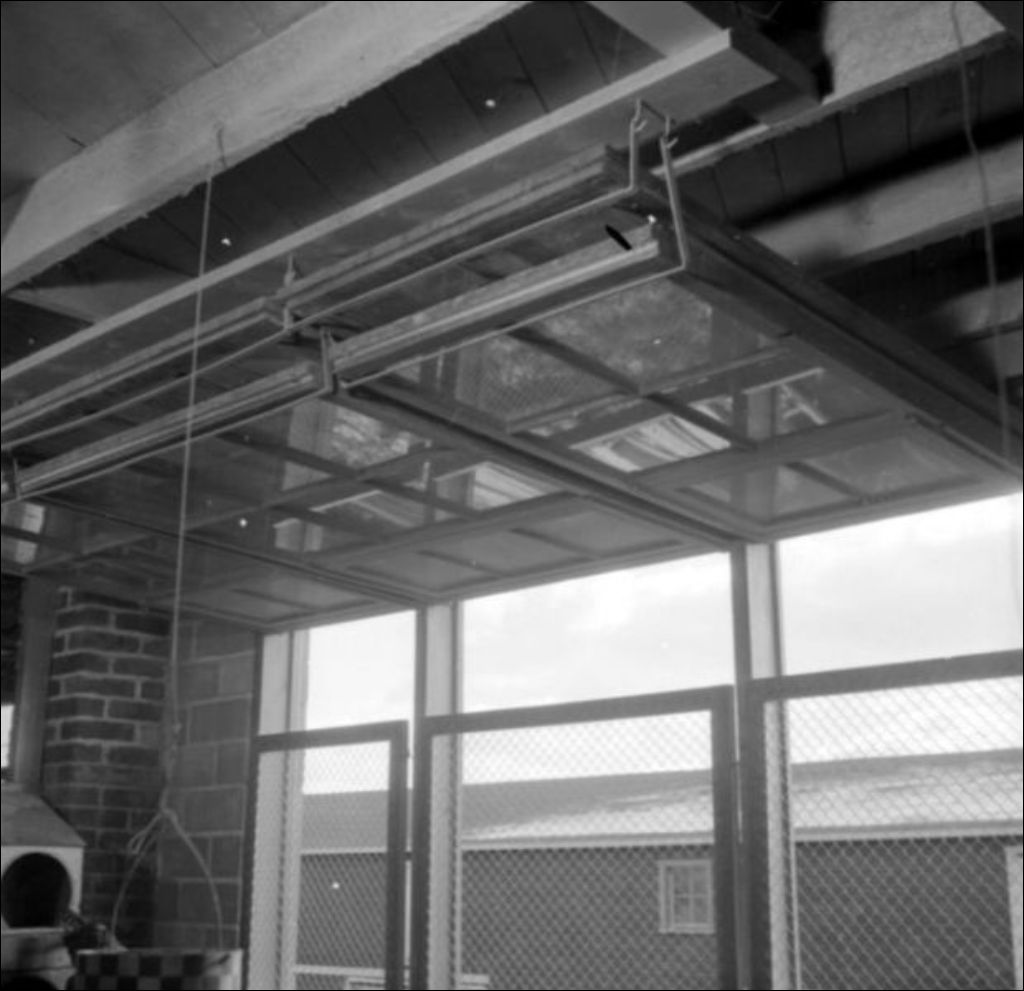 - Intérieur d'un poulailler dont on remarque la fenestration et les installations. Images réalisées sur la ferme du docteur P. S. Viau à Saint-Rémi de Napierville pour le Service de l'information du ministère de l'Agriculture