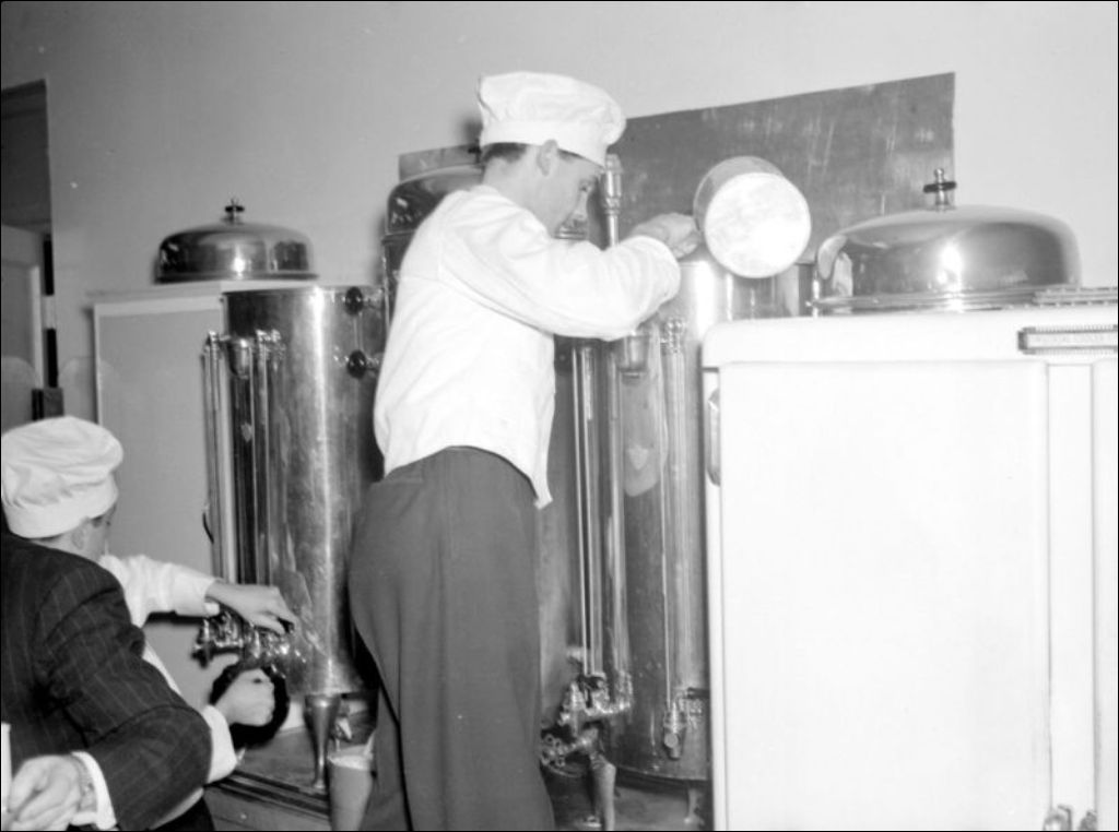 - Il s'agit de cours de cuisine offerts à l'École centrale d'arts et métiers, située sur la rue Saint-Denis à Montréal. Des étudiants sont probablement occupés à préparer le café (E6,S7,SS1,P042203) tandis que d'autres s'occupent de la soupe et font frire de la nourriture (E6,S7,SS1,P042205). Ce dossier a été réalisé pour l'École centrale d'arts et métiers, ministère de la Jeunesse