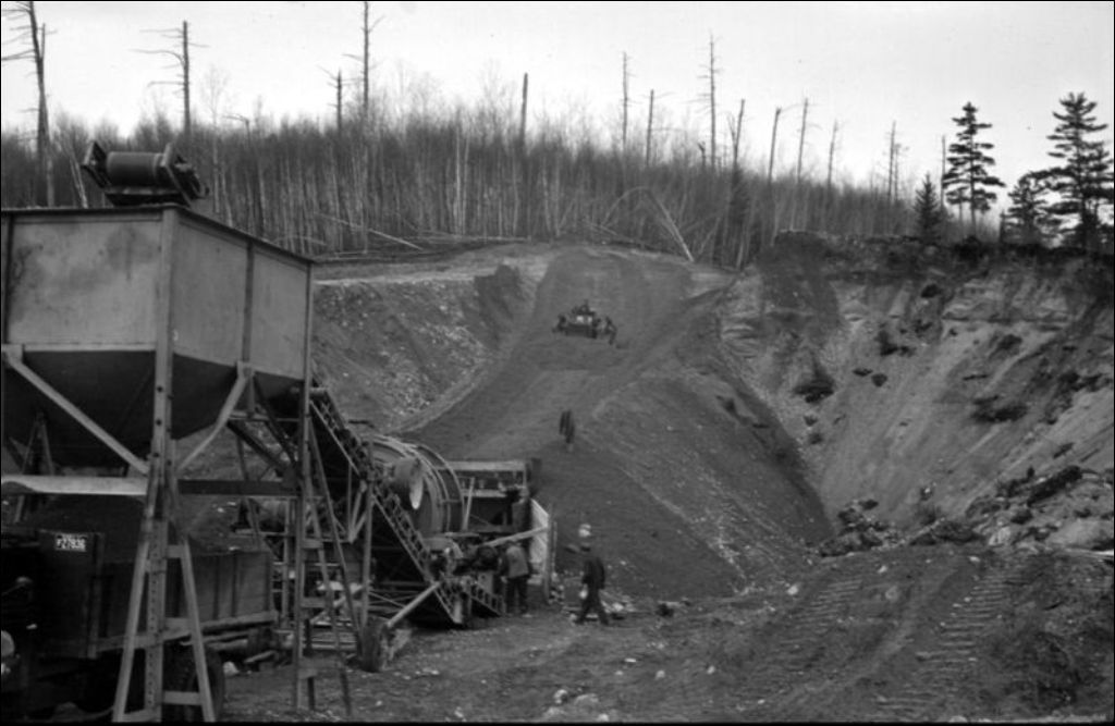 Il s'agit du chantier de construction du pont de la rivière Camatose situé dans le réservoir Dozois, comté de Pontiac. Nous voyons la machinerie incluant un tracteur (E6,S7,SS1,P042323 et E6,S7,SS1,P042326). Une image témoigne de la présence de membres du clergé (E6,S7,SS1,P042328). Enfin, nous remarquons une vue d'ensemble du chantier (E6,S7,SS1,P042329). Ce dossier a été réalisé pour le Service des ponts, ministère des Travaux publics