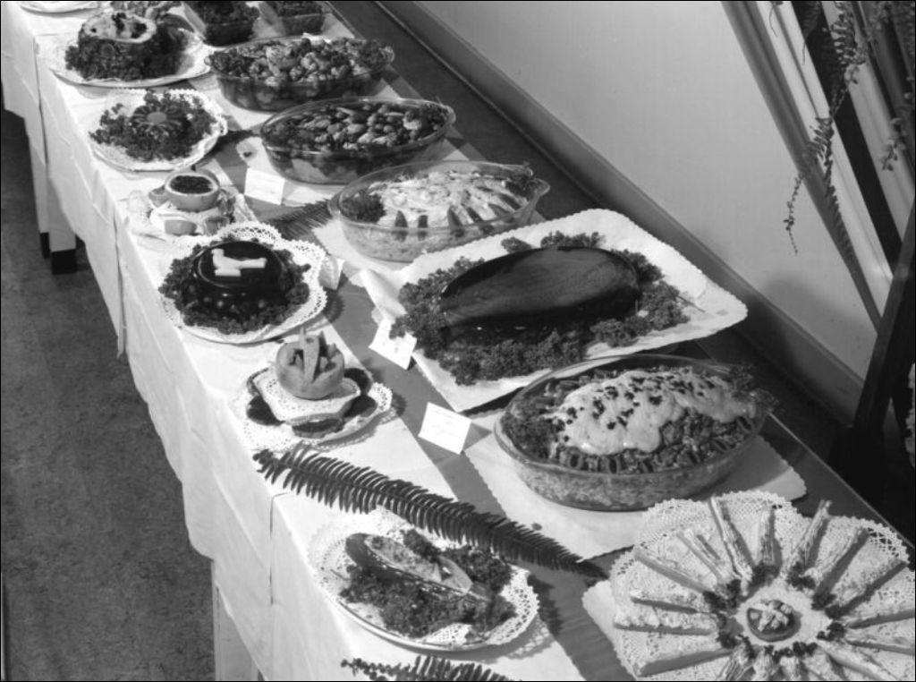 - Il s'agit de l'exposition présentant les travaux des étudiants de l'École centrale d'arts et métiers située sur la rue Saint-Denis à Montréal. Nous apercevons les résultats des travaux culinaires (E6,S7,SS1,P042367, E6,S7,SS1,P042369 à E6,S7,SS1,P042371), les ustensiles de cuisine ayant servi à la préparation des plats (E6,S7,SS1,P042372) ainsi qu'une présentation de manteaux et d'accessoires de fourrure (E6,S7,SS1,P042374). Ce dossier a été réalisé pour l'École centrale d'arts et métiers, ministère de la Jeunesse