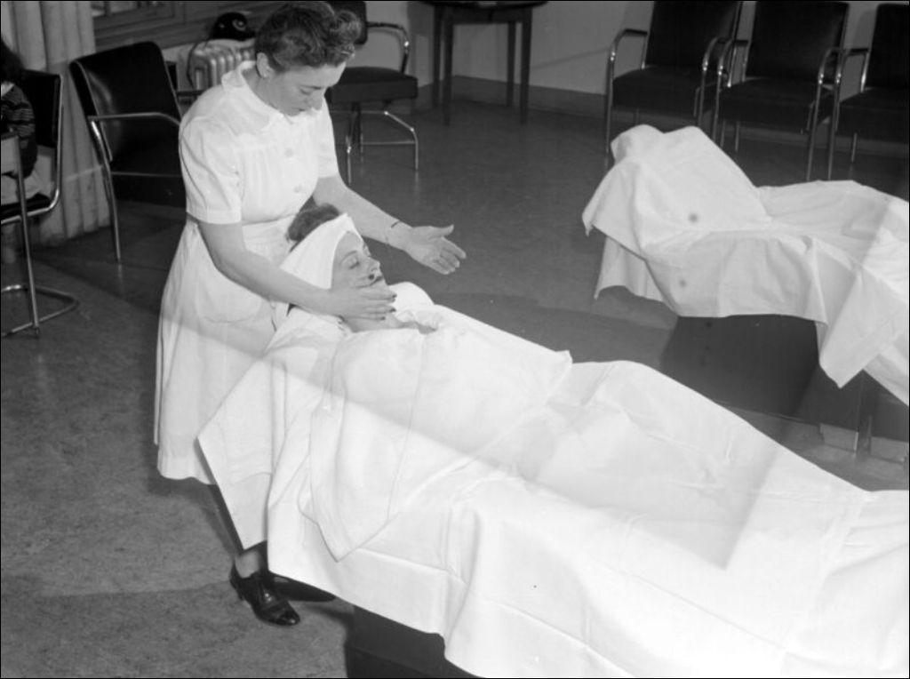 - Il s'agit de l'exposition des travaux d'étudiants de l'École centrale d'arts et métiers située sur la rue Saint-Denis à Montréal. Nous voyons une enseignante qui prodigue des soins facials (E6,S7,SS1,P042383), des apprenties manucures (E6,S7,SS1,P042384), du mobilier de coiffure tel que chaises, miroirs et séchoirs à cheveux (E6,S7,SS1,P042385) ainsi que les résultats de travaux d'horlogerie (E6,S7,SS1,P042386 à E6,S7,SS1,P042388). Ce dossier a été réalisé pour l'École centrale d'arts et métiers, ministère de la Jeunesse