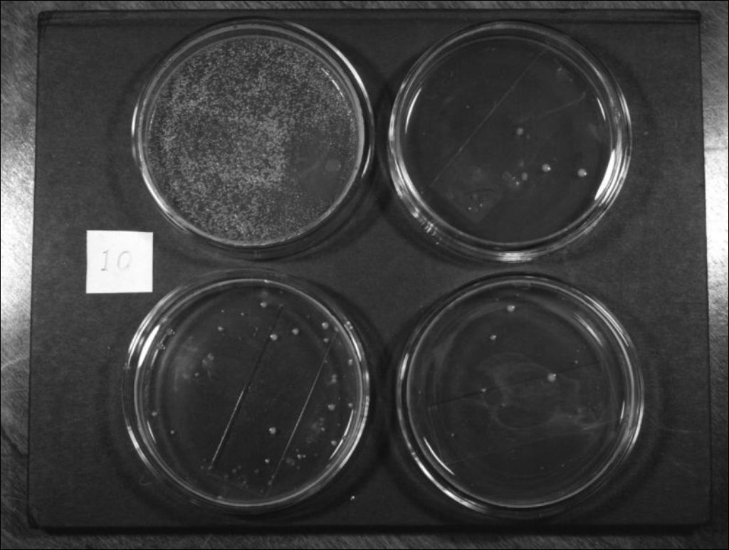 Ce dossier illustre les étapes du développement de cultures lactiques et a été produit pour l'École de laiterie de Saint-Hyacinthe et le ministère de l'Agriculture. Nous observons l'apparition de différentes bactéries à la surface des plaquettes. Un tableau gradué distingue quatre stades de développement des échantillons