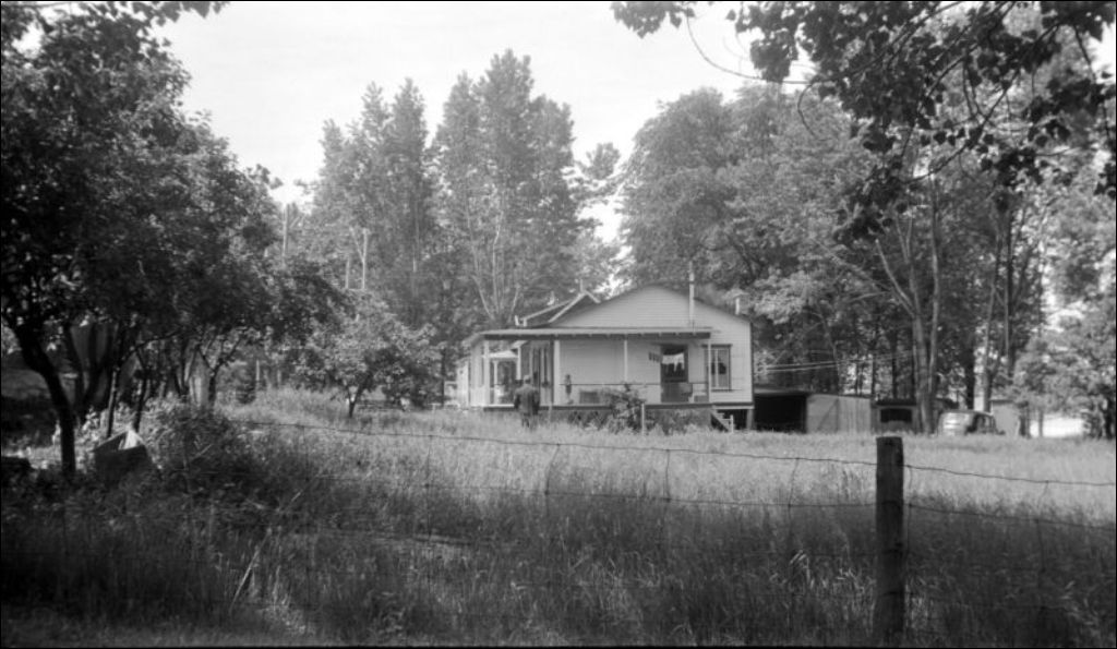 - Il s'agit d'un site sinistré probablement touché par un incendie. Nous remarquons la maison de bois et son hangar entouré d'eau. Dossier réalisé pour le Commissariat des incendies, ministère des Travaux publics