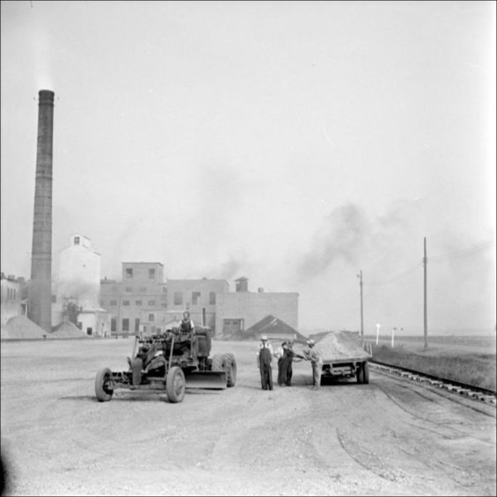 - Ce dossier concerne des sujets variés dont l'asphaltage du chemin menant à la raffinerie de sucre de Saint-Hilaire (devenu Mont-Saint-Hilaire) où l'on remarque les ouvriers affairés aux travaux (E6,S7,SS1,P043181 à E6,S7,SS1,P043187); un magasin où l'on vend crème glacée et fromage à Mont-Saint-Hilaire (E6,S7,SS1,P043188); un troupeau de vaches ainsi qu'une jument et son poulain à Boucherville (E6,S7,SS1,P043189 et E6,S7,SS1,P043190); un troupeau de vaches laitières appartenant à J. Ernest Pilon de La Prairie (E6,S7,SS1,P043191). Ce dossier a été réalisé pour le Service de l'information, ministère de l'Agriculture