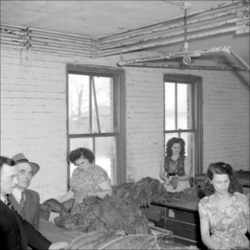 Il s'agit d'un reportage sur l'entrepôt de la Société coopérative agricole de tabac de Saint-Jacques, comté de Montcalm. Des employées sélectionnent des feuilles de tabac (E6,S7,SS1,P043775 et E6,S7,SS1,P043776) et des hommes examinent les feuilles de certains plants (E6,S7,SS1,P043777 à E6,S7,SS1,P043779). Ce dossier a été réalisé pour le Service de l'information du ministère de l'Agriculture