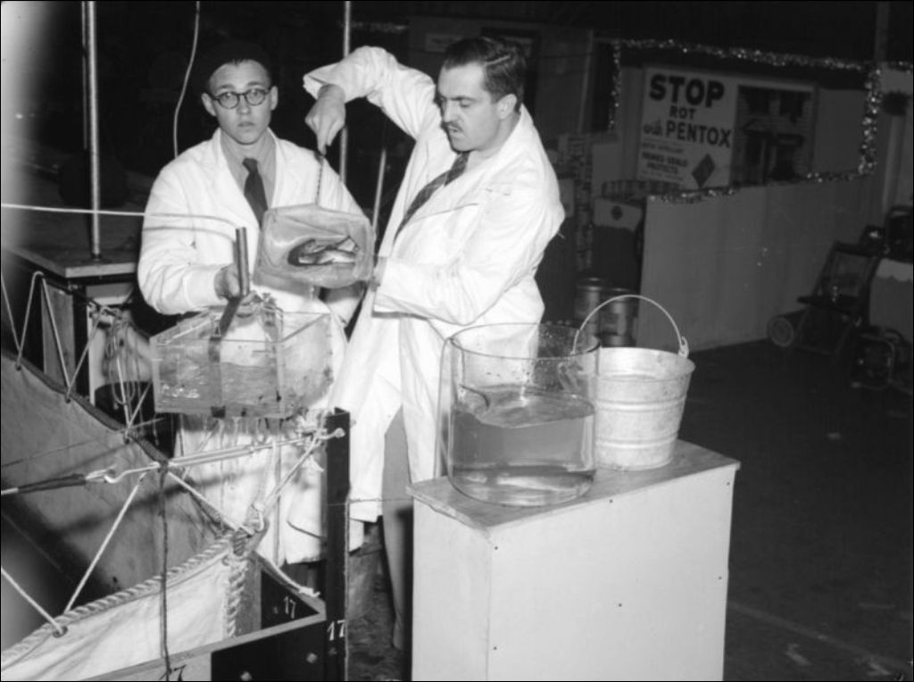 Ministère de la Chasse et de la Pêche. Service de biologie (Exposition, sport), Avril 1948, Archives nationales à Montréal, Fonds Ministère de la Culture et des Communications, (06M,E6,S7,SS1,D43885-43891), Jacques Desjardins.