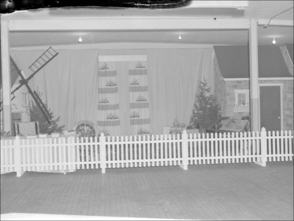 - Tenue du kiosque de l'Office provincial de publicité relevant du Service du tourisme du Québec dans le cadre d'une exposition intitulée National Sportmen Show à Ottawa. Une préposée donne de l'information à un visiteur. Les autres clichés présentent une femme s'adonnant à des travaux de broderie et un kiosque consacré à l'artisanat où se trouvent des courtepointes, des tapis, des rideaux et un tableau de bois sculpté. Ce dossier a été réalisé pour le Service de tourisme et l'Office provincial de publicité