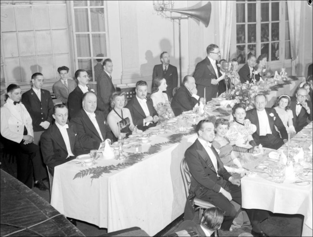 - Il s'agit du gala annuel des artistes de la radio au cours duquel la chanteuse Rolande Desormeaux a été élue Miss Radio 1948. L'événement est présidé par le maire de Montréal, Camillien Houde (E6,S7,SS1,P043973 et E6,S7,SS1,P043975) et se déroule à l'hôtel Windsor, rue Peel à Montréal. Sur le podium se trouvent la reine de la radiodiffusion canadienne en compagnie de la comédienne Yvette Brind'Amour (E6,S7,SS1,P043974 et E6,S7,SS1,P043976). Selon la coutume, Rolande Desormeaux porte une robe de soirée réalisée par les étudiants en haute couture de l'École centrale d'arts et métiers. Images exécutées pour l'École centrale d'arts et métiers et le ministère de la Jeunesse
