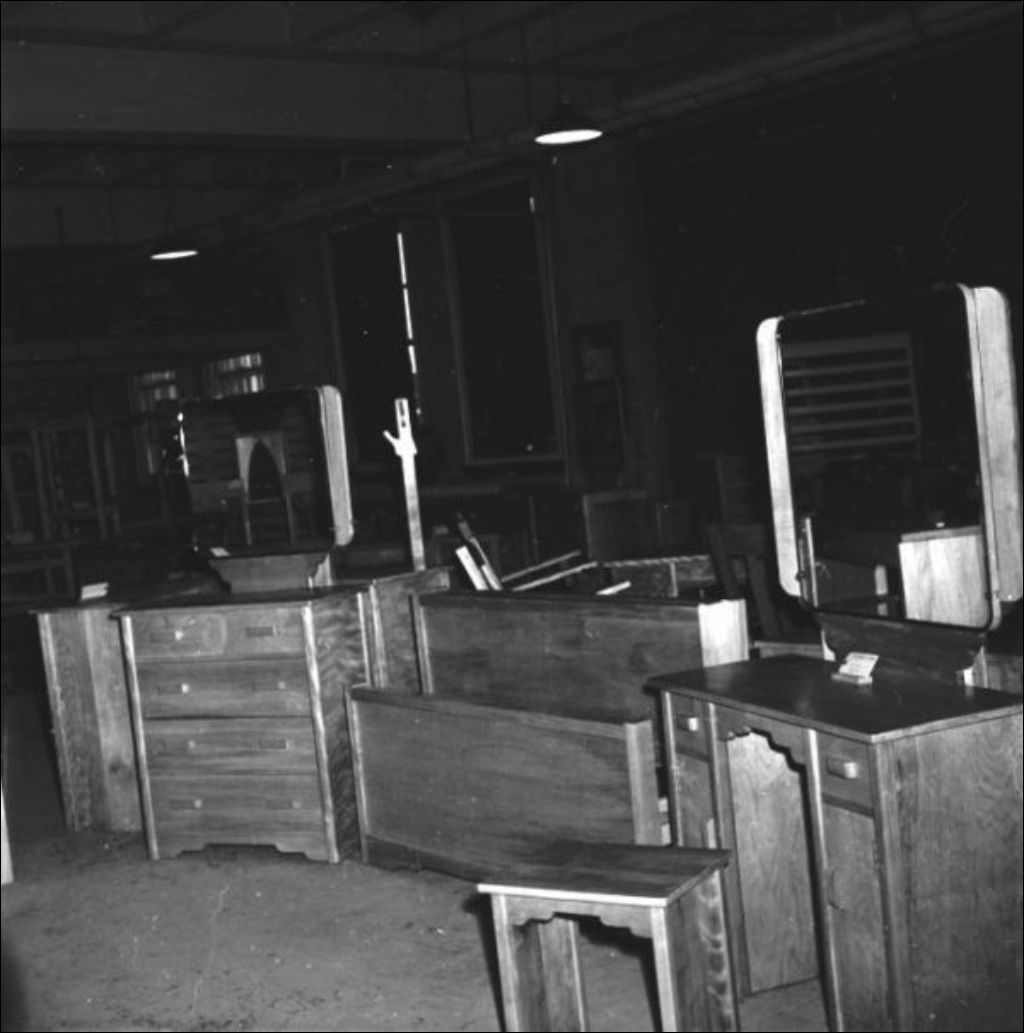 - Travaux d'ébénisterie réalisés par les étudiants de l'École d'agriculture de Sainte-Martine-de-Châteauguay. Parmi le mobilier, nous retrouvons une coiffeuse, des bureaux, des chiffonniers, une remorque de camion, un établi orné d'un étau, un banc de sciage muni d'une scie circulaire, un mobilier de jardin, etc. Une des images présente divers outils utilisés pour le travail du bois (E6,S7,SS1,P044027). Ce reportage a été réalisé pour l'École d'agriculture de Sainte-Martine-de-Châteauguay et le ministère de l'Agriculture