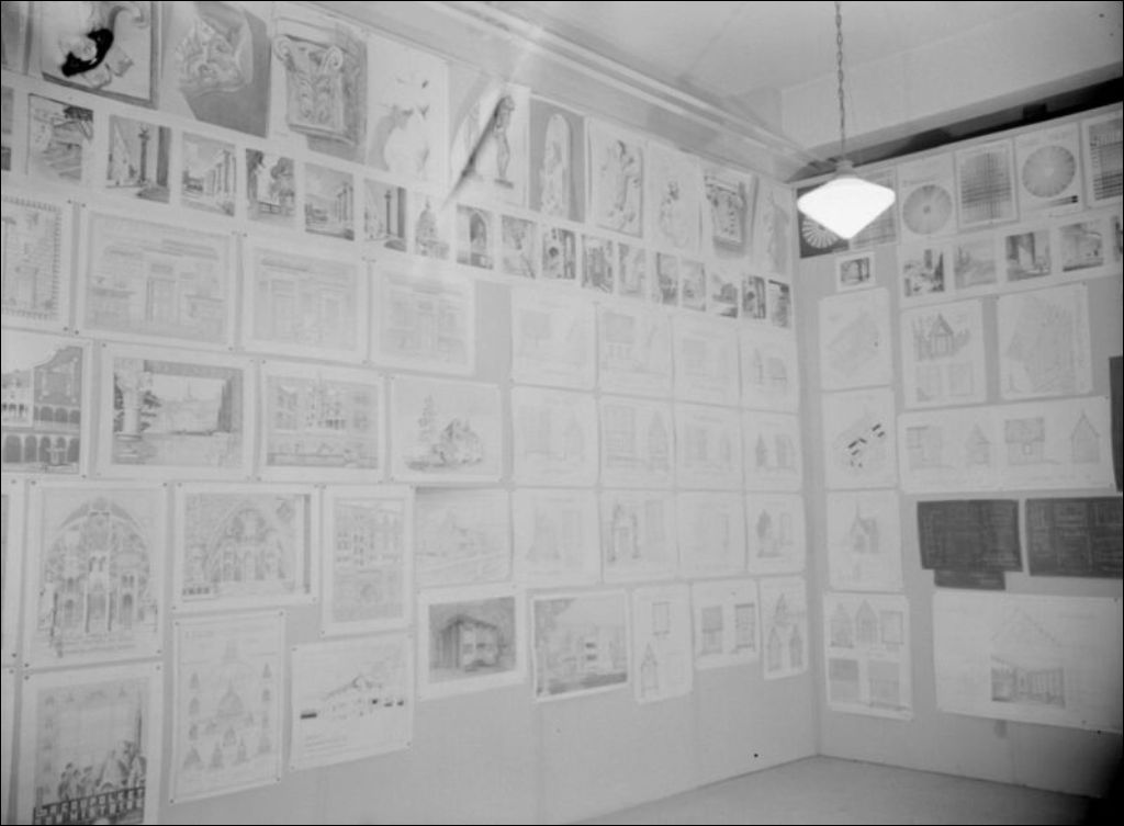 - Ce reportage documente l'exposition annuelle des étudiants de l'École des beaux-arts de Montréal, rue Saint-Urbain. Nous découvrons des ateliers mettant en valeur diverses techniques : la gravure en relief sur bois, cour donné par Alyne Gauthier-Charlebois (E6,S7,SS1,P045000), le dessin d'architecture, le dessin ornemental de même l'art de la composition décorative, sous la responsabilité du professeur Jean Simard. Ce dossier a été conçu pour l'École des beaux-arts de Montréal et le Secrétariat provincial