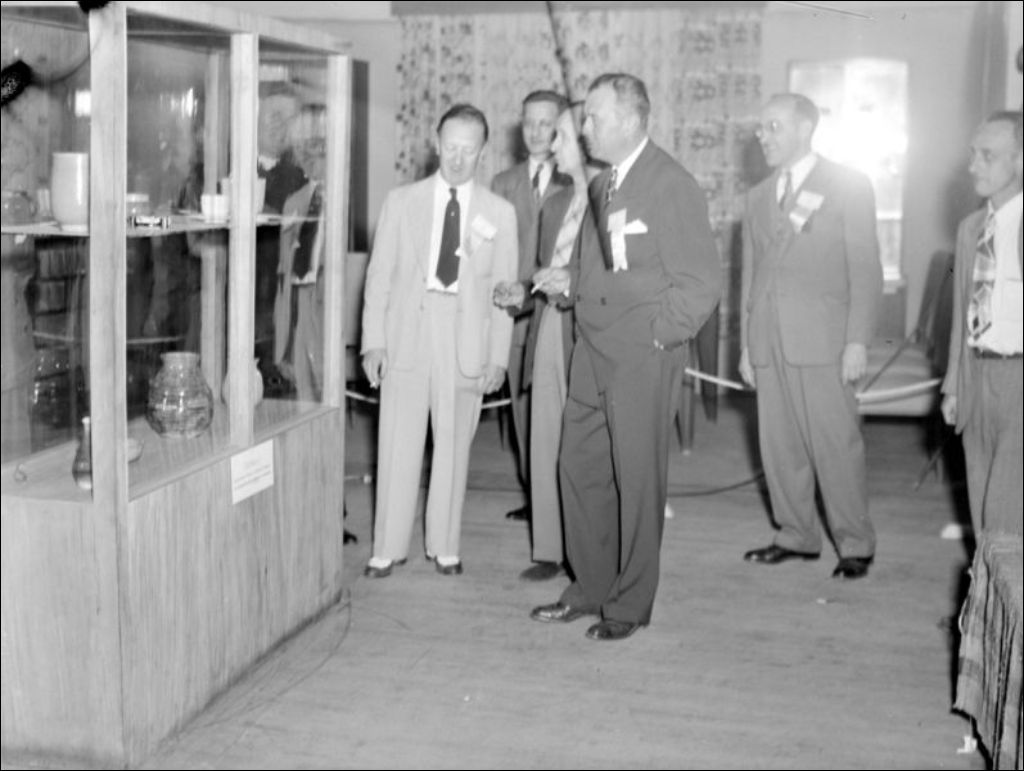 - Il s'agit de l'exposition artisanale de Saint-Jean-sur-Richelieu où se trouvent le ministre de l'Industrie et du Commerce, Paul Beaulieu et le ministre de la Jeunesse et du Bien-être social, Joseph-Paul Sauvé (E6,S7,SS1,P045276). Au nombre des institutions d'enseignement représentées se trouvent l'École des arts domestiques (E6,S7,SS1,P045281) et l'École des arts et métiers de Saint-Jean-sur-Richelieu (E6,S7,SS1,P045283). Parmi les objets exposés, nous retrouvons des meubles de bois et de fer forgé, des poupées, des ceintures fléchées et de la vaisselle décorative. Ce dossier a été réalisé pour le directeur de l'École du meuble de Montréal, Jean-Marie Gauvreau et le ministère de la Jeunesse