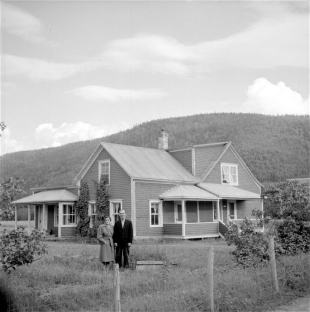 - Il s'agit de scènes prises dans la municipalité de Grande-Vallée en Gaspésie (E6,S7,SS1,P045704, E6,S7,SS1,P045705, E6,S7,SS1,P045708). Eddy Minville est photographié en compagnie de son épouse devant la maison familiale (E6,S7,SS1,P045699). Nous remarquons un monument érigé à la mémoire des pionniers fondateurs de Grande-Vallée (E6,S7,SS1,P045701 à E6,S7,SS1,P045703) et l'église de la municipalité (E6,S7,SS1,P045706). Ce dossier a été produit pour le Service de l'information du ministère de l'Agriculture