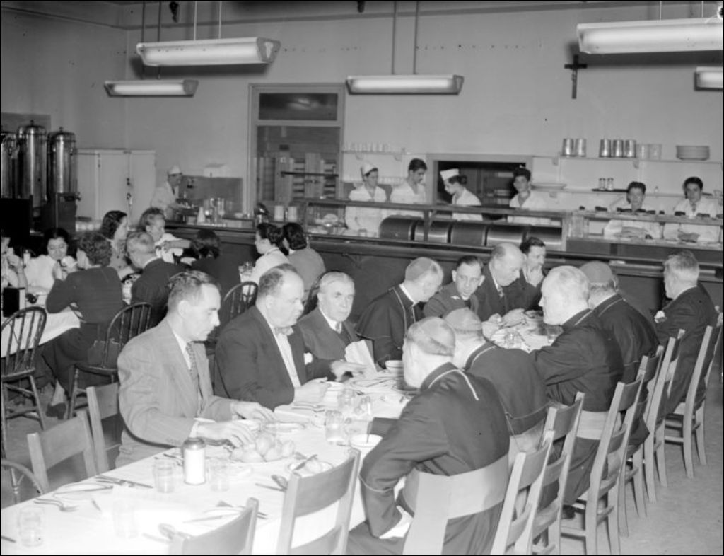 - Lors d'une visite des évêques de l'épiscopat québécois à l'École centrale d'arts et métiers, rue Saint-Denis à Montréal, nous apercevons monseigneur Joseph Charbonneau, archevêque de Montréal et monseigneur Maurice Roy, archevêque de Québec (E6,S7,SS1,P046493) en compagnie du directeur de l'institution, monsieur B. Laberge (E6,S7,SS1,P046492) et de quelques professeurs. Ce dossier a été produit pour l'École centrale d'arts et métiers et le ministère de la Jeunesse