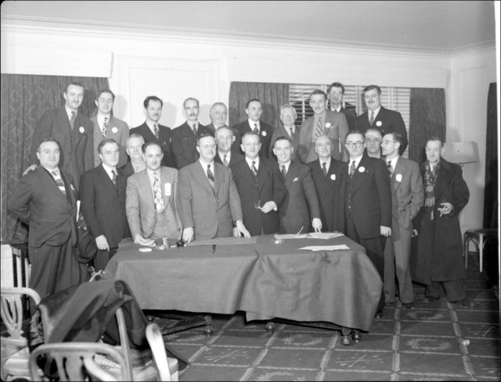 - Exposition hôtelière se déroulant au Mount Royal Hotel de la rue Peel à Montréal. Le ministre du Commerce et de l'Industrie, Paul Beaulieu (E6,S7,SS1,P046626) procède à la coupe du ruban inaugural sous les yeux du maire de Montréal, Camillien Houde (E6,S7,SS1,P046624 et E6,S7,SS1,P046625). Le sous-ministre de l'Agriculture, Louis Coderre agit à titre de conférencier (E6,S7,SS1,P046614) de même que Monsieur G. Delage (E6,S7,SS1,P046620) de l'Association des hôteliers de la province. Par ailleurs, nous apercevons le maire Houde à la table d'honneur (E6,S7,SS1,P046623). Ce reportage a été préparé pour le Service de l'hôtellerie et le ministère du Commerce et de l'Industrie