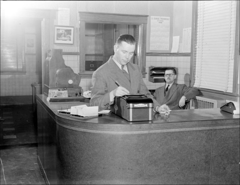 - Bâtiment et installations administratives (E6,S7,SS1,P046972 et E6,S7,SS1,P046973) de la Coopérative de Maniwaki dans la région de Gatineau, où se déroulent les opérations de pasteurisation du lait (E6,S7,SS1,P046974 à E6,S7,SS1,P046976). Nous apercevons une salle logeant les bacs, cuves et cylindres destinés à la stérilisation du lait. Nous retrouvons l'assemblée des membres devant l'édifice coopératif (E6,S7,SS1,P046977) ainsi que les membres de l'exécutif réunis en huis clos (E6,S7,SS1,P046979). À Gracefield, nous remarquons l'exécutif (E6,S7,SS1,P046980) et l'assemblée de la coopérative posant devant le cinéma local (E6,S7,SS1,P046978). Reportage produit pour le Service de l'information et le ministère de l'Agriculture