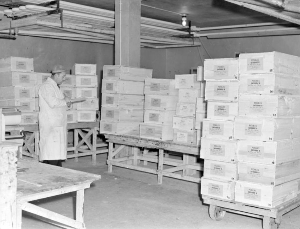 - Techniques de transformation utilisées dans l'industrie avicole québécoise et particulièrement dans un abattoir de volailles à Marieville (E6,S7,SS1,P047230 à E6,S7,SS1,P047234), et dans une coopérative avicole de Québec-Ouest (E6,S7,SS1,P047235 à E6,S7,SS1,P047239). Les étapes de production vont de la sélection des oeufs jusqu'à l'expédition. Reportage produit pour le Service d'aviculture du ministère de l'Agriculture