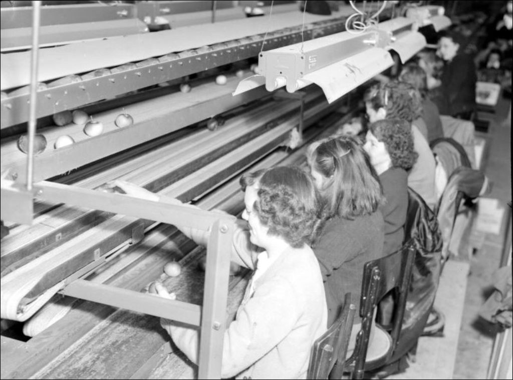 - Coopérative des pomiculteurs du Québec située à Farnham dans le comté de Brôme-Missisquoi. Nous remarquons les bâtiments (E6,S7,SS1,P047884), le bureau administratif (E6,S7,SS1,P047887), l'usine et la chaîne de production avec les opérations de tri (E6,S7,SS1,P047882), de classification (E6,S7,SS1,P047881), d'emballage (E6,S7,SS1,P047883) et de mise en boîte (E6,S7,SS1,P047888 et (E6,S7,SS1,P047890). Dossier créé pour le Service de l'information et le ministère de l'Agriculture