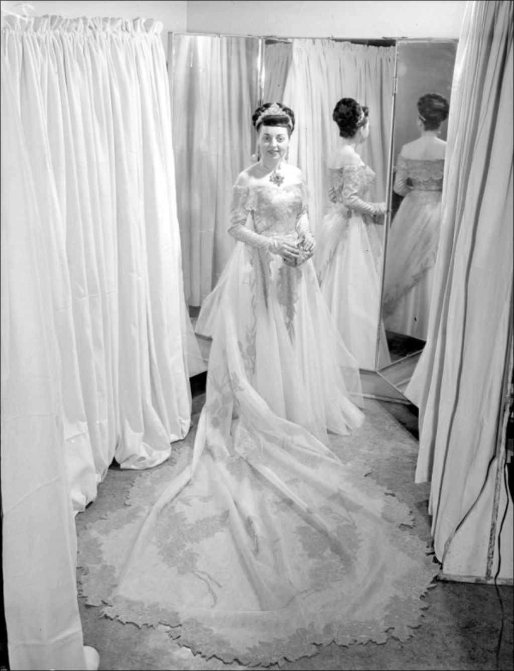 E.C.A.M., ministère de la Jeunesse. «Miss Radio 1950» (Robe par les élèves de l'E.C.A.M.), Avril 1950, Archives nationales à Montréal, Fonds Ministère de la Culture et des Communications, (06M,E6,S7,SS1,D49496-49496), Claude Décarie.