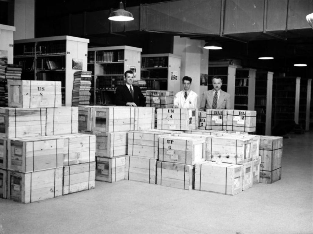 - Bibliothèque centrale et laboratoire de l'Office de biologie de l'Université de Montréal à Montréal. Des colis sont livrés à la Bibliothèque centrale de l'Université de Montréal (E6,S7,SS1,P49540 et E6,S7,SS1,P49541). Des biologistes font des expériences et tiennent des statistiques sur la pêche (E6,S7,SS1,P49542 à E6,S7,SS1,P49547). Dossier produit pour l'Office de biologie, ministère de la Chasse et de la Pêche