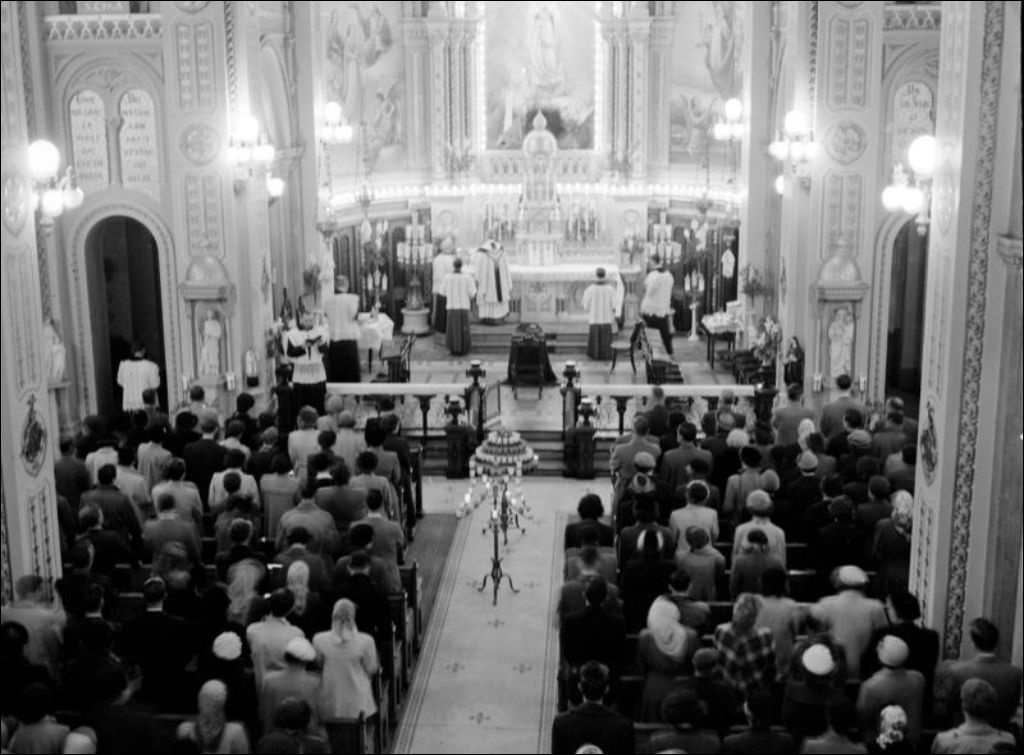 - Visite de Paul-Émile Léger, archevêque de Montréal, à l'École centrale d'arts et métiers située sur la rue Saint-Denis à Montréal. Après la messe à l'église Notre-Dame-de-Lourdes (E6,S7,SS1,P50746), un déjeuner est servi aux étudiants (E6,S7,SS1,P50750). Les invités d'honneur se rendent à l'École (E6,S7,SS1,P50747) et prononcent un discours (E6,S7,SS1,P50748 et E6,S7,SS1,P50749). Reportage produit pour l'École centrale d'arts et métiers, ministère de la Jeunesse