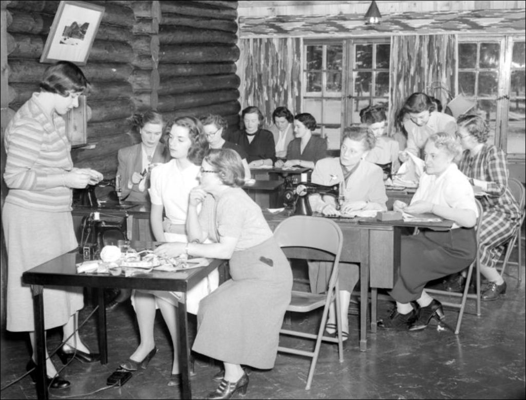 - Il s'agit d'un cours d'hôtellerie donné à l'hôtel La Sapinière de Val-David. Nous remarquons des étudiants assistant aux cours de couture et de pâtisserie au cours duquel on procède au glaçage d'une bûche. Les conférenciers prononcent des allocutions et les invités visitent les cuisines. Les scènes ont été photographiées pour le Service de l'hôtellerie du ministère du Commerce et de l'Industrie