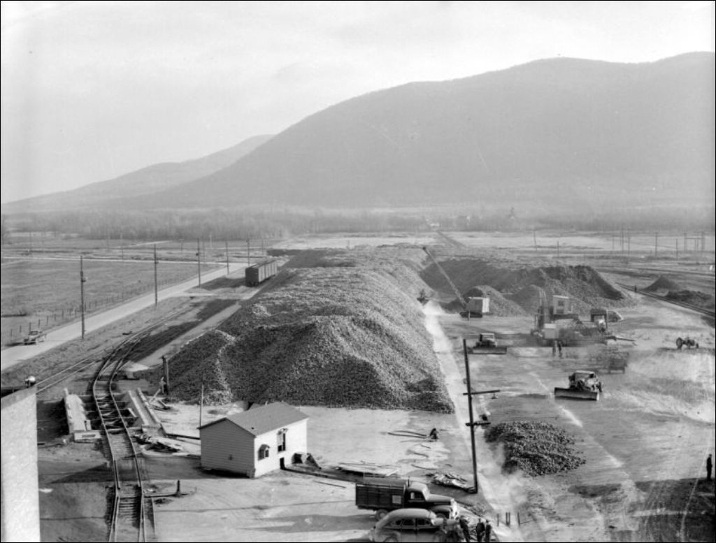 - Il s'agit d'une raffinerie de sucre située à Saint-Hilaire-sur-Richelieu (devenu Mont-Saint-Hilaire). Nous remarquons les montagnes de betterave à sucre, les camions à benne, un bouteur et le chemin de fer à proximité. Les scènes ont été photographiées pour la Raffinerie de sucre, ministère de l'Agriculture