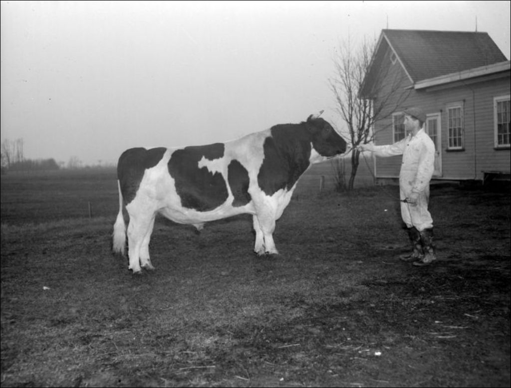 - Il s'agit d'un boeuf de la ferme des Jésuites située à Pointe-aux-Trembles, devenu un quartier de la Ville de Montréal. Nous remarquons un travailleur agricole et un bâtiment de la ferme. Les scènes ont été photographiées pour le Service des agronomes du ministère de l'Agriculture