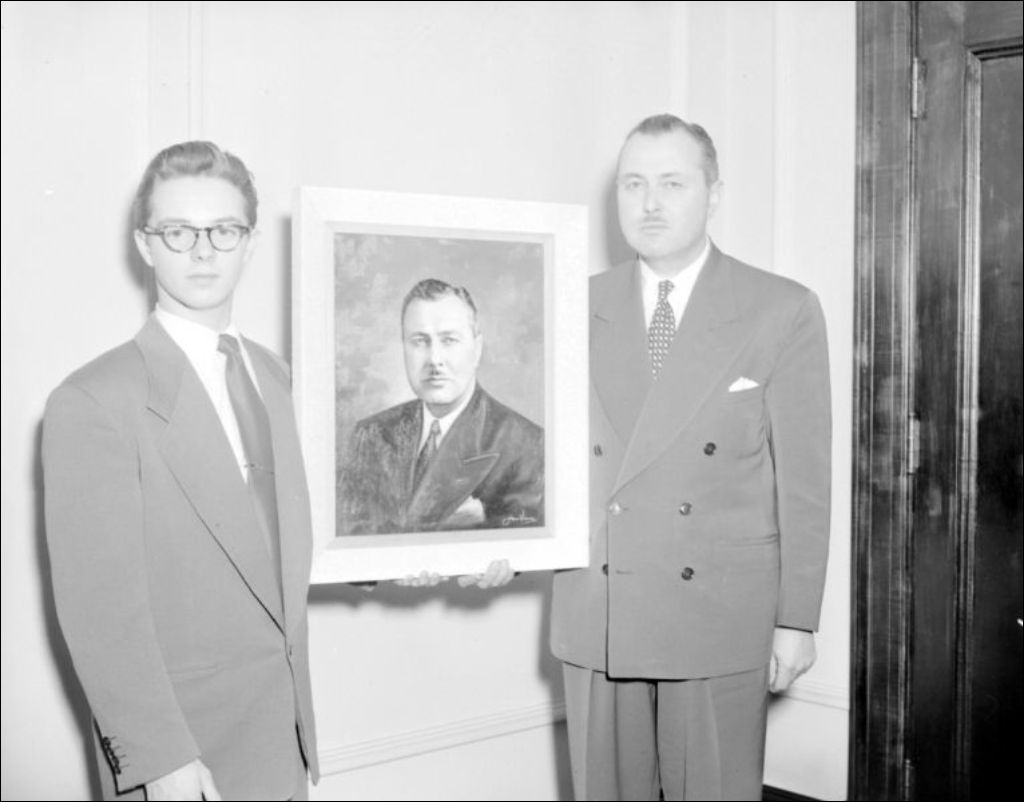 - Il s'agit d'une visite de Paul Sauvé, ministre du Bien-être social et de la Jeunesse, à l'École des arts graphiques située à Montréal. Nous remarquons un étudiant présentant un portrait au ministre et les convives. Les scènes ont été photographiées pour le Service de l'aide à la jeunesse du ministère du Bien-être social et de la Jeunesse