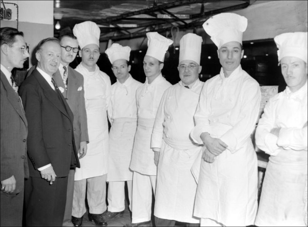 - Il s'agit d'une exposition d'art culinaire présentée à l'hôtel Mont-Royal situé sur la rue Peel et du Salon de l'hôtellerie présenté dans les locaux des Fusiliers Mont-Royal à Montréal. Nous remarquons Marcel Puvilland du Service de l'hôtellerie, Paul Beaulieu, ministre du Commerce et de l'Industrie et les cuisiniers de l'hôtel Mont-Royal (E6,S7,SS1,P51457). À proximité des créations culinaires se trouvent Émile Puvilland, R. Pashba, M. René, Marcel Puvilland, Paul Beaulieu, le sous-ministre du Commerce et de l'Industrie Louis Coderre et Paul Gouin (E6,S7,SS1,P51458, E6,S7,SS1,P51460, E6,S7,SS1,P51469). Louis Coderre discute en compagnie de journalistes (E6,S7,SS1,P51461 et E6,S7,SS1,P51470) à l'hôtel Mont-Royal; Joseph-Hormisdas Délisle, ministre d'État, Paul Beaulieu, Jean-Marie Gauvreau, directeur de l'École du meuble et G. Delage de l'Association professionnelle des hôteliers portent un toast à l'exposition d'art culinaire. Paul [...]