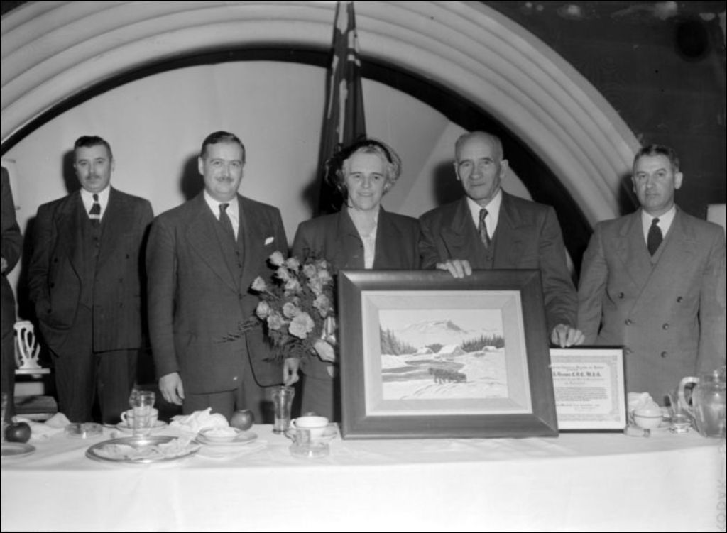 Il s'agit du congrès des aviculteurs à l'Hôtel Mont-Royal situé sur la rue Peel à Montréal. Nous remarquons M. A. Brown recevant une peinture (E6,S7,SS1,P51547) et prononçant une allocution. Un certificat de mérite lui a été décerné par le Comité des industries agricoles du Québec (E6,S7,SS1,P51547). Les scènes ont été photographiées pour le Service d'aviculture du ministère de l'Agriculture