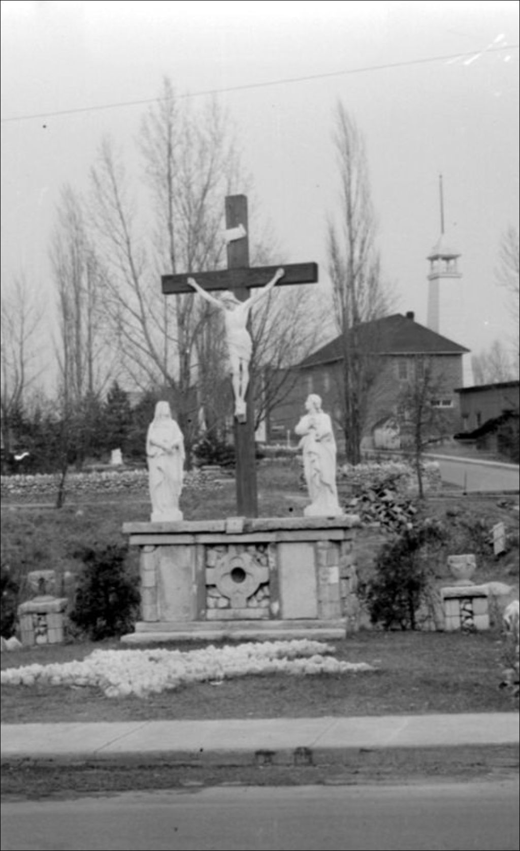 Il s'agit de statues religieuses situées à proximité de la jonction Buckingham-Jonction à Buckingham devenu Masson-Angers. Nous remarquons un calvaire. Une grotte est décorée des statues de Sainte-Bernadette et de la Sainte Vierge. Les scènes ont été photographiées pour le Service du tourisme de l'Office provincial de publicité
