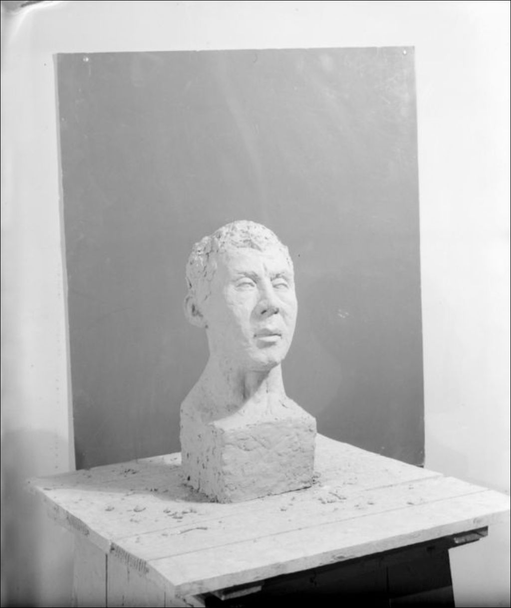 - Il s'agit de bustes réalisés en terre glaise et modelés par les étudiants de madame Nolin, professeure à l'École des Beaux-Arts de Montréal située sur la rue Saint-Urbain à Montréal. Les oeuvres sont présentées à l'École Polytechnique de la rue Saint-Denis à Montréal. Les scènes ont été photographiées pour le Service de l'École des Beaux-Arts du ministère du Secrétariat provincial