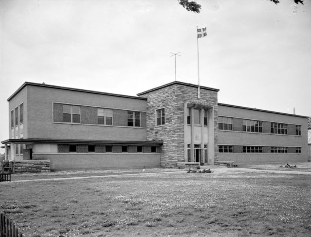 Il s'agit du bâtiment de l'École des arts et métiers située à Drummondville. La scène a été photographiée pour le Service de l'aide à la jeunesse du ministère du Bien-être social et de la Jeunesse