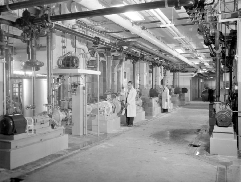 Il s'agit de l'École de papeterie de Trois-Rivières. Nous remarquons les étudiants dans les salles des machines (E6,S7,SS1,P53111 à E6,S7,SS1,P53116; E6,S7,SS1,P53118). Des techniciens réalisent des tests en laboratoire (E6,S7,SS1,P53117). Les scènes ont été photographiées pour le Service d'aide à la jeunesse du ministère du Bien-être social et de la Jeunesse