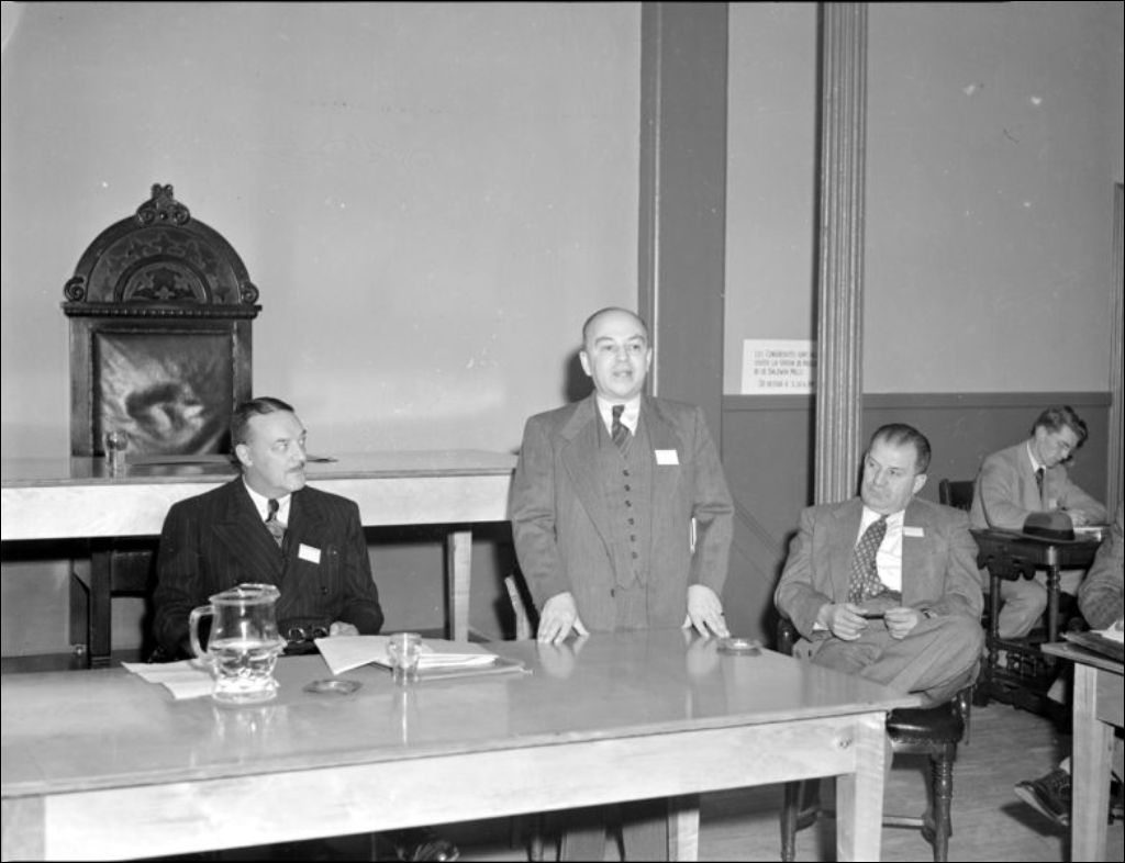 Il s'agit de vues de Coaticook. Nous retrouvons les conférenciers réunis qui discutent (E6,S7,SS1,P53944 à E6,S7,SS1,P53946). Nous apercevons un groupe d'ingénieurs forestiers réunis (E6,S7,SS1,P53947). Les congressistes visitent probablement la station piscicole de Baldwin Mills située à Coaticook (E6,S7,SS1,P53950 et E6,S7,SS1,P53952) et observent les poissons (E6,S7,SS1,P53953 à E6,S7,SS1,P53956). Reportage produit pour le le Service de biologie, ministère de la Chasse et de la Pêche