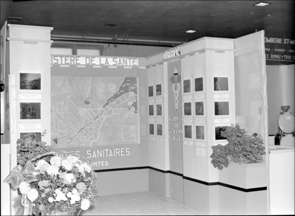 - Exposition industrielle et commerciale qui s'est déroulée à Louiseville. Nous retrouvons le kiosque du ministère de la Santé (E6,S7,Ss1,P53972) et celui de la compagnie de cirage Choisy (E6,S7,SS1,P53973). Dossier produit pour le Service de l'hygiène, ministère de la Santé