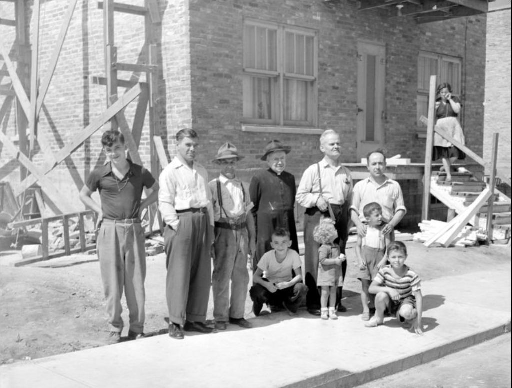 Coopérative d'habitation située à Québec. Nous retrouvons la famille Duchesneau (E6,S7,SS1,P54100) devant leur maison en construction (E6,S7,SS1,P54102). Dossier produit pour le ministère de l'Agriculture