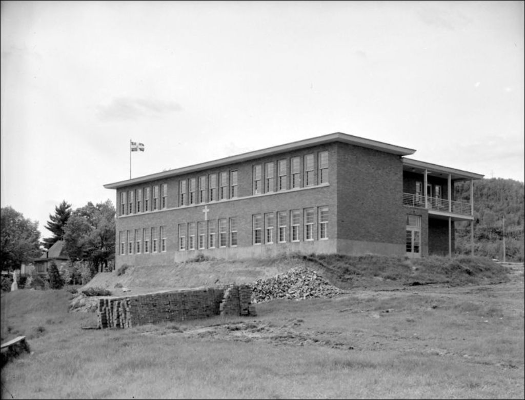 - Vues probablement de l'école Saint-Jean-Baptiste située à Mont-Rolland (devenu Sainte-Adèle). Nous apercevons le bâtiment (E6,S7,SS1,P54624) et la classe (E6,S7,SS1,P54626). Reportage produit pour le Service de l'instruction publique, Secrétariat provincial