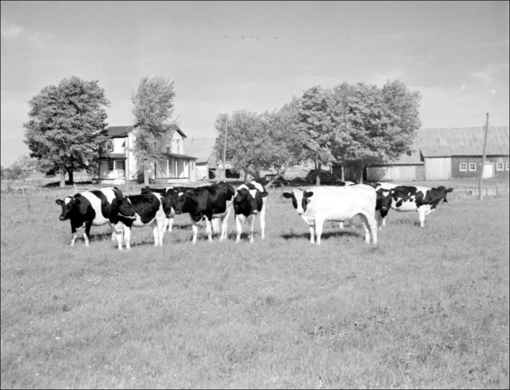 - Vues de Princeville, Saint-Edmond-de-Grantham et Saint-Cyrille-de-Wendover. Nous retrouvons un troupeau de vaches à Princeville (E6,S7,SS1,P54912). À Wickham, nous apercevons des génisses qui appartiennent à Gérard Sarrazin (E6,S7,SS1,P54915), à Joseph Sarrazin (E6,S7,SS1,P54916) et à Gérard Houle (E6,S7,SS1,P54917). Nous remarquons la taure de Rivier Béliveau de Saint-Edmond-de-Grantham (E6,S7,SS1,P54918) et la génisse de Robert Verrier de Saint-Cyrille-de-Wendover (E6,S7,SS1,P54921). Dossier produit pour le ministère de l'Agriculture