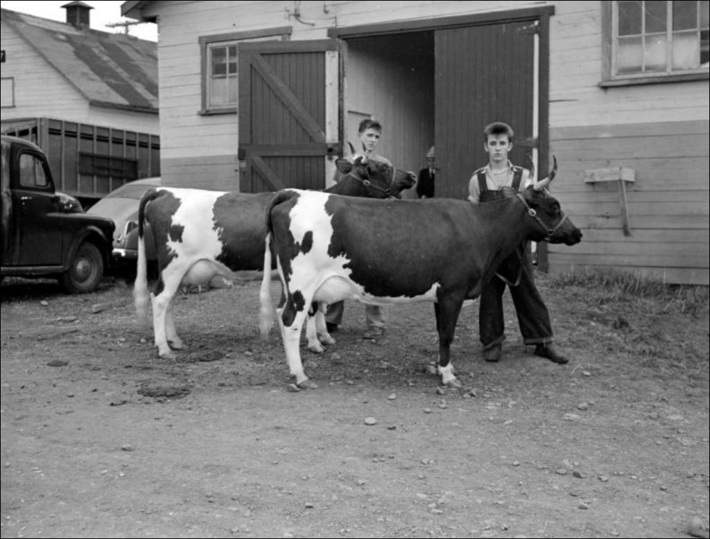 - Il s'agit de vues de troupeau de vaches à Saint-Hyacinthe et Québec. Nous retrouvons des taures à l'exposition qui s'est tenue à Québec (E6,S7,SS1,P54941). Nous apercevons un troupeau de vaches en pâturage à Saint-Hyacinthe (E6,S7,SS1,P54942). À l'École de laiterie située à Saint-Hyacinthe, nous remarquons des génisses (E6,S7,SS1,P54943 et E6,S7,SS1,P54944). Dossier produit pour le ministère de l'Agriculture