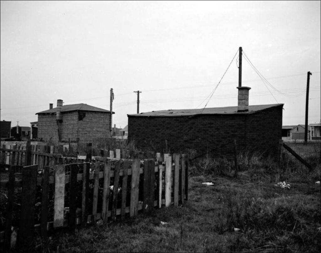 Il s'agit d'une fuite de gaz qui s'est produite dans un quartier résidentiel. Nous apercevons les résidences touchées par le sinistre (E6,S7,SS1,P55133, E6,S7,SS1,P55136 et E6,S7,SS1,P55137). Nous remarquons la porte vitrée d'une maison (E6,S7,SS1,P55139). Dossier créé pour Hydro-Québec, ministère des Ressources hydrauliques