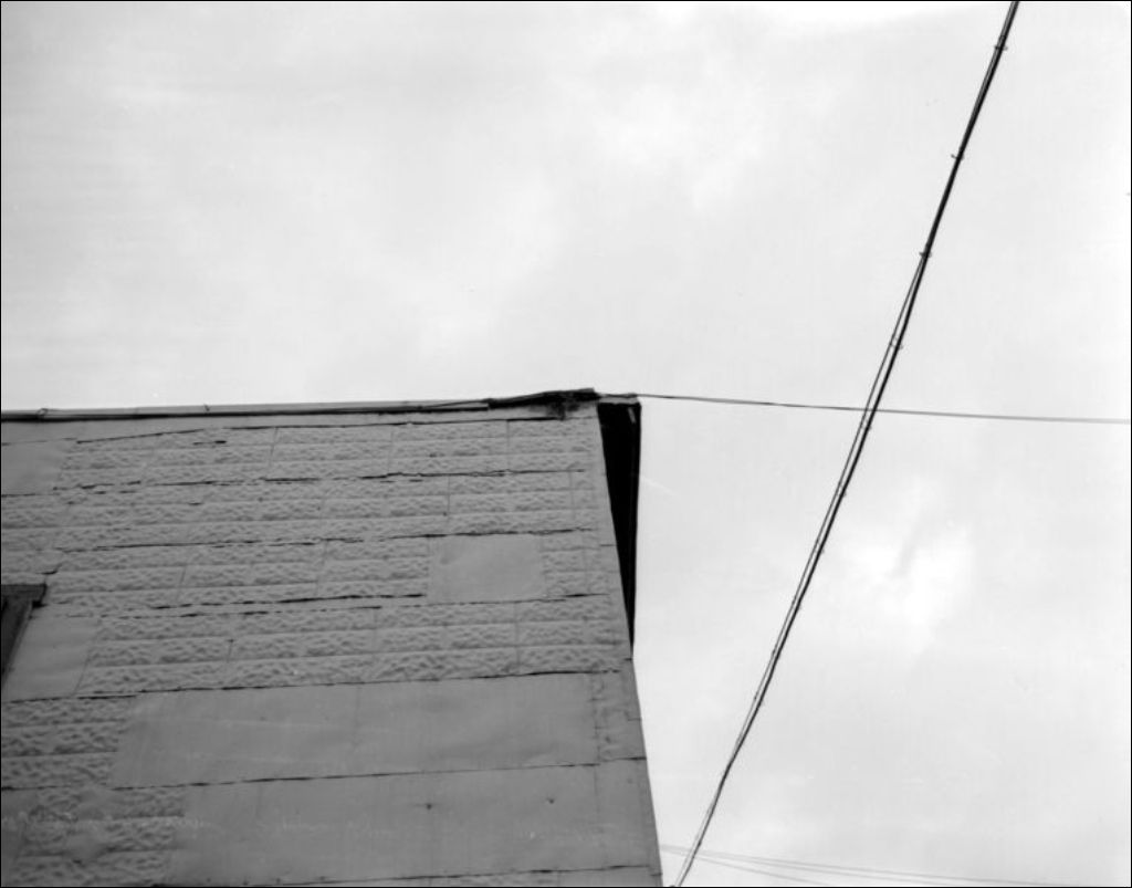 - Il s'agit d'un bâtiment endommagé par un voltage trop élevé. Nous remarquons le bâtiment; les lignes de distribution; un transformateur et le bâtiment. Les scènes ont été photographiées pour Hydro-Québec et le Service des ressources hydrauliques