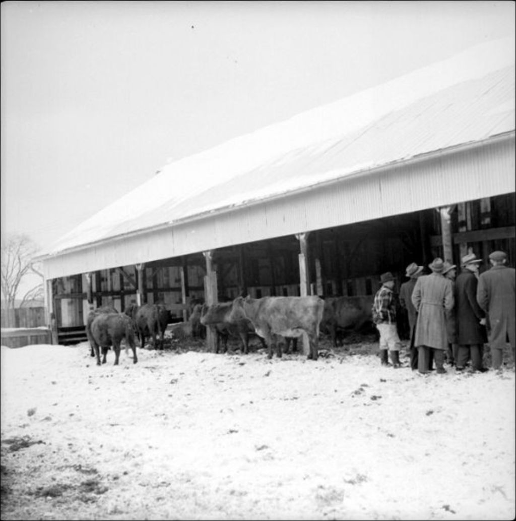 - Vues de Saint-Charles-sur-Richelieu et de Lennoxville (devenu Sherbrooke). Nous apercevons des troupeaux de vaches (E6,S7,SS1,P55919, E6,S7,SS1,P55926 et E6,S7,SS1,P55929) et des bâtiments de la ferme (E6,S7,SS1,P55921). Nous retrouvons une scène d'hiver (E6,S7,SS1,P55928), une résidence privée (E6,S7,SS1,P55939) et un paysage (E6,S7,SS1,P55940). Des travailleurs creusent un trou (E6,S7,SS1,P55925, E6,S7,SS1,P55931 et E6,S7,SS1,P55934). Nous remarquons des chevaux attelés sur la ferme (E6,S7,SS1,P55932 et E6,S7,SS1,P55936). Dossier produit pour le Service de l'information, ministère de l'Agriculture