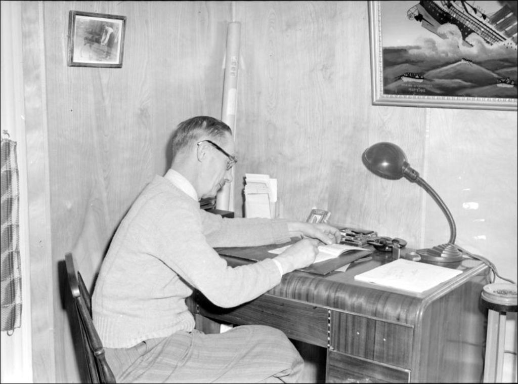 - Il s'agit de travailleurs dans le bois qui font probablement de l'arpentage (E6,S7,Ss1,P56089). Nous retrouvons également un homme assis à son bureau (E6,S7,SS1,P56088). Dossier produit pour le ministère de la Chasse et de la Pêche